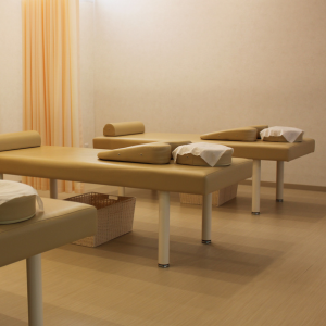 内装は白とベージュを基調とした明るく、落ち着いた雰囲気となっています。また清潔感を保つこと、ベッド、枕等のアルコール消毒、フェイスペーパー等、患者様毎に交換しております。